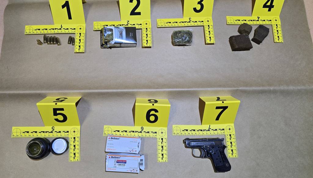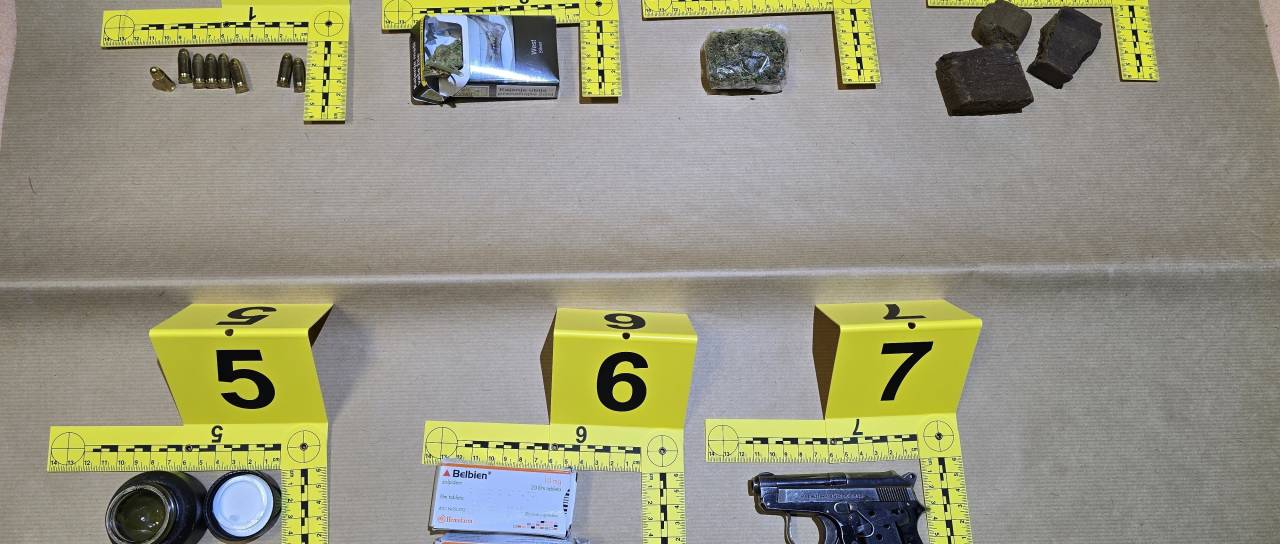 Prav tako so zasegli kremo z vsebnostjo prepovedane droge, zdravila, ki se izdajajo na recept in vsebujejo psihoaktivne snovi, ter pištolo in naboje.