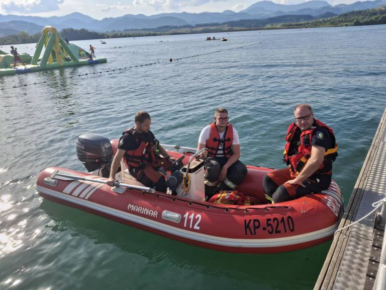Potapljači so danes v Velenjskem jezeru iskali pogrešanega tujega državljana. Na prizorišču so bili tudi gasilci in policisti.