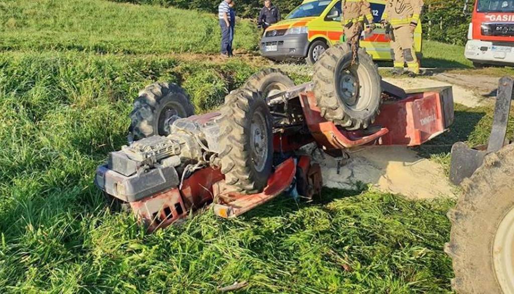 Na domačem dvorišču je 65-letni občan med vožnjo s traktorjem zapeljal čez betonski zid, zaradi česar se je vozilo prevrnilo – moški je poškodbam podlegel na kraju nesreče.
