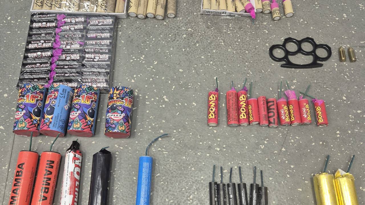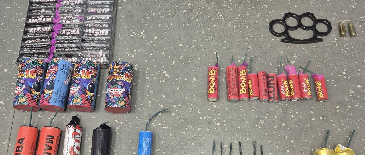 Med hišnimi preiskavami so našli in zasegli 705 prepovedanih pirotehničnih izdelkov, dva naboja in kovinski bokser.