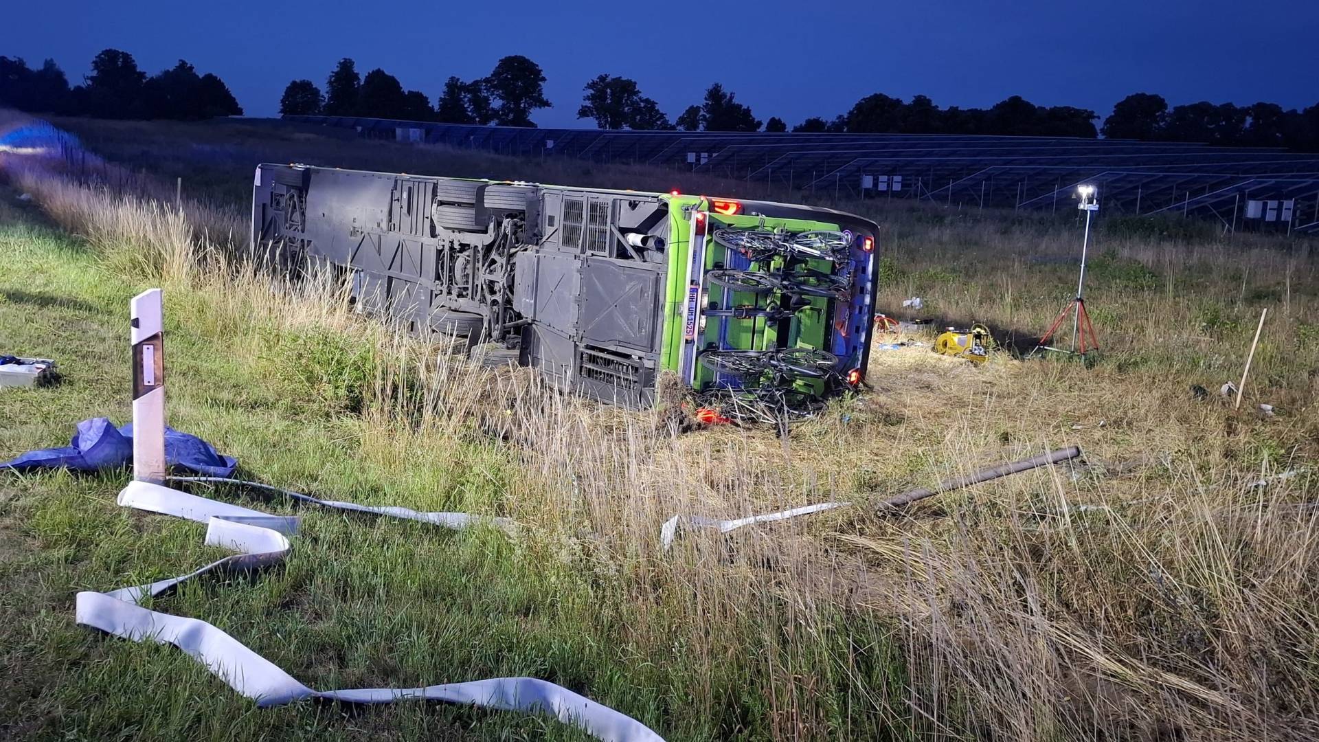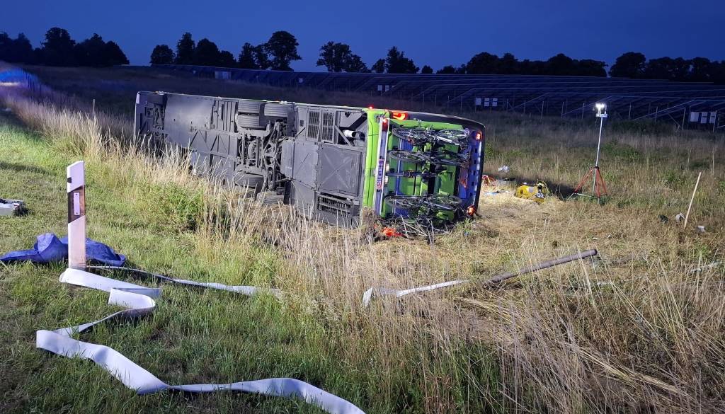 Na avtocesti A19 v nemški zvezni deželi Mecklenburg-Predpomerjansko se je prevrnil avtobus družbe FlixBus, pri čemer je bilo 20 ljudi poškodovanih, od tega je eden v kritičnem stanju, je danes sporočil tiskovni predstavnik nemške policije.