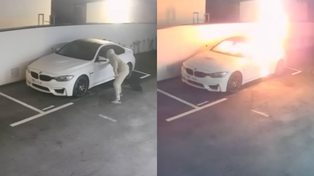 Na spletu se je pojavil tudi videoposnetek, ki prikazuje moškega v svetli trenirki, kako razbije vozilo, vanj vrže neznano stvar in ga nato zažge. Kot je videti na videu, pa storilec zbeži, tik preden avto zajamejo plameni.