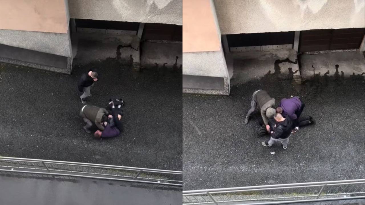 Nato je objavil omenjene posnetke. Tako lahko najprej vidimo, da moški leži na tleh, medtem ko ga drugi drži okoli vratu. Zraven stojita še dva moška. V nadaljevanju domnevni kriminalist kriči: »Daj roke nazaj. Miruj, policija. Kje maš drogo?«