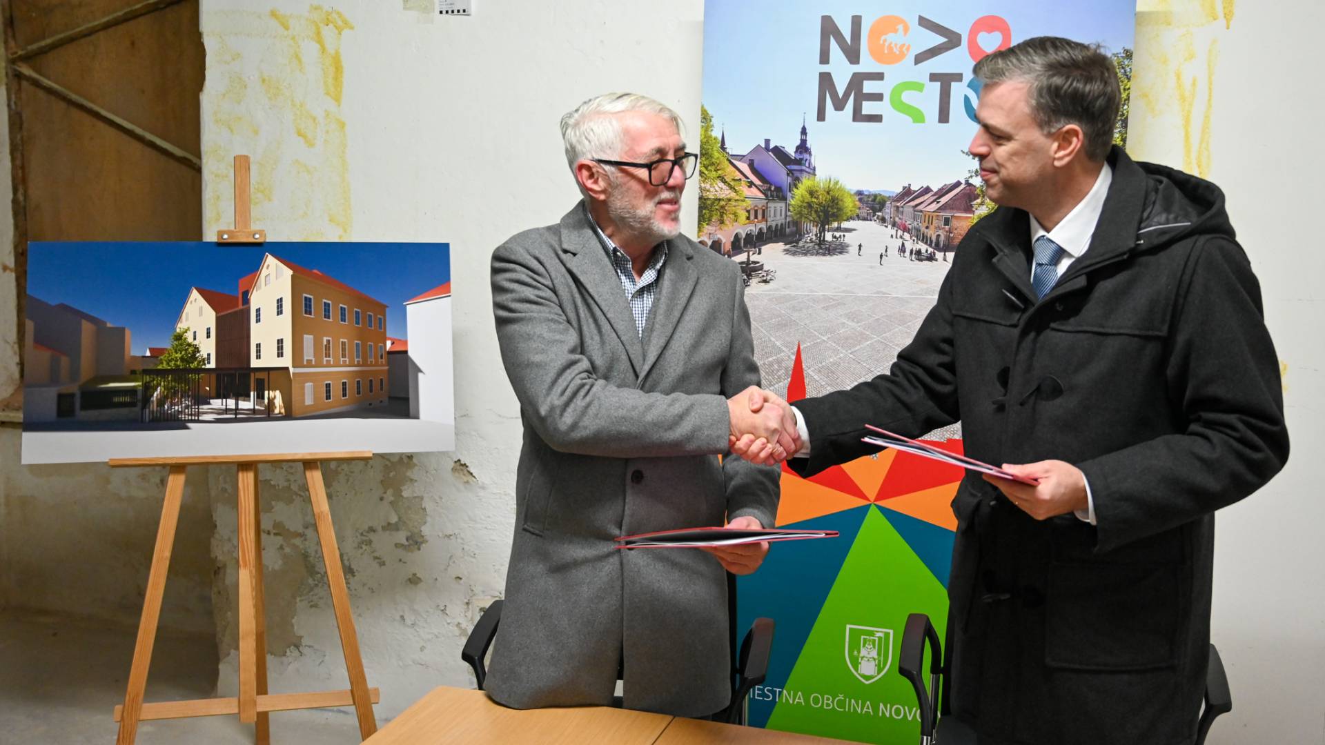 Gradbena pogodba, ki sta jo podpisala župan Mestne občine Novo mesto Gregor Macedoni in direktor gradbenega podjetja FA-ST Slavko Strasbergar, zajema obnovo celotnega objekta, instalacij in statično sanacijo.