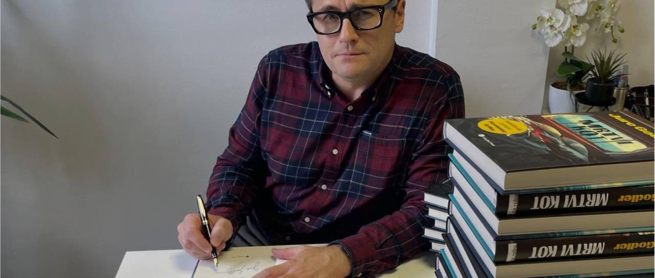 Z njim bodo spregovorili o njegovem novem kriminalnem romanu Mrtvi kot, s katerim začenja novo serijo zgodb o razreševanju umorov in predstavlja novega knjižnega junaka – detektiva Hermana Arha.