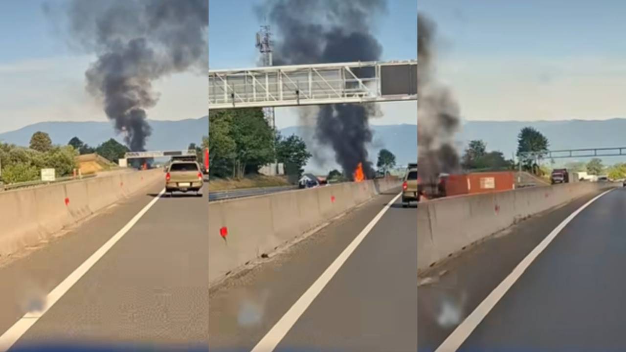 Na avtocesti med izvozom Šempeter in Žalec se je danes, 30. junija, okoli 7. ure, zgodila prometna nesreča, v kateri je voznik tovornega vozila trčil v betonsko ograjo, se prevrnil in zagorel.