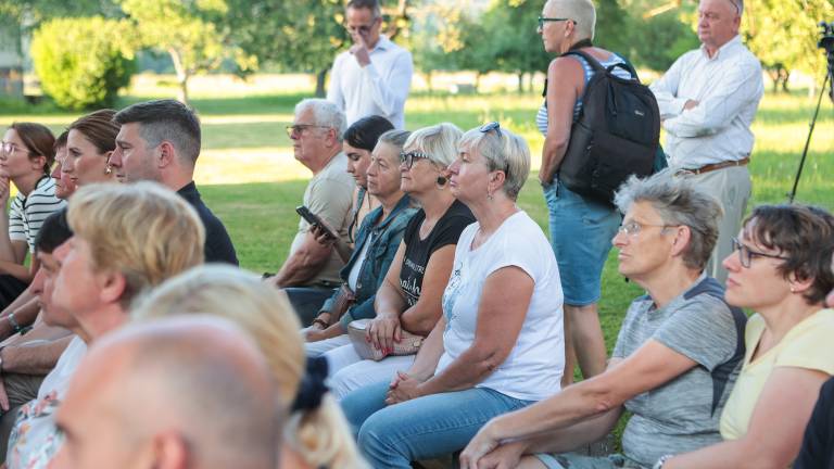 Pogovor so si številni obiskovalci lahko ogledali v prenosu tudi pred Škrabčevo domačijo