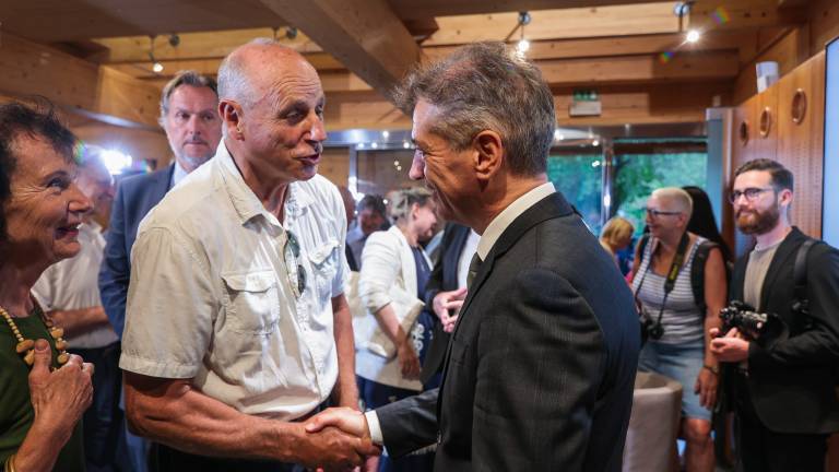 Premier Robert Golob v Škrabčevem skednju ena na ena s prekaljenim novinarjem in voditeljem Marjanom Doro. Kdo vse je prišel poslušati pogovor?