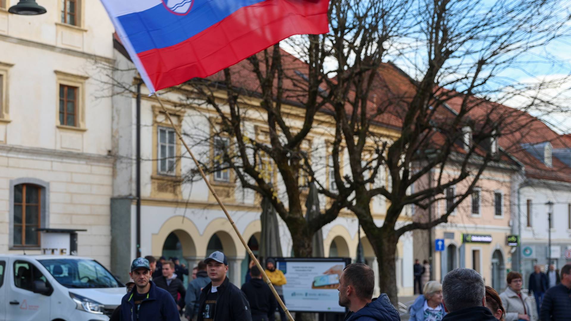 15.54 Medtem so v mestu okrepljene policijske patrulje, na trgu pa potekajo zadnje priprave na protest.