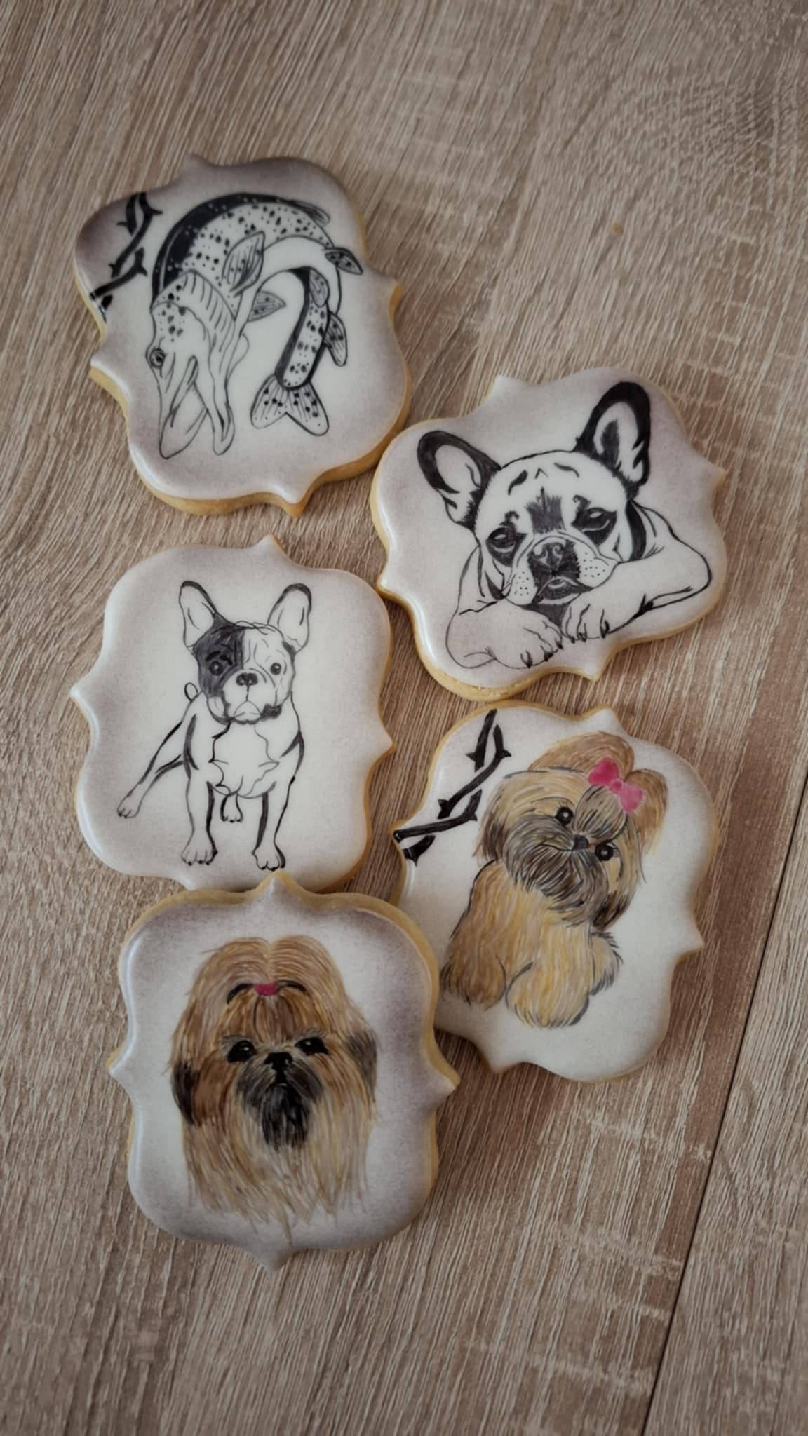 Aleksandra največkrat po piškotih riše s pomočjo projektorja, ki si ga je kar nekaj časa želela in si ga nazadnje le privoščila, kakšnih bolj zahtevnejših slik, kot so denimo spodnji psički, pa se loti s čopičem in gel barvami.