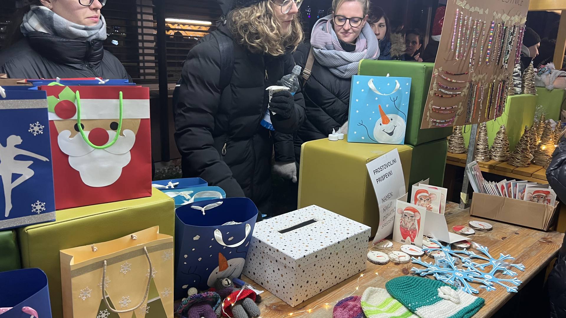 S prostovoljnimi prispevki so tako vsi obiskovalci lahko kupili skorajda vse, kar jim je poželelo srce - od okusnih piškotov, suhega sadja in peciva, do unikatnih obeskov za novoletne smrečice, adventne venčke in ključe, pa kap, šal, rokavic, zapestnic, verižic, za (ali pa namesto) nas so izdelali tudi čudovite voščilnice.