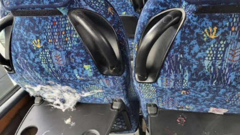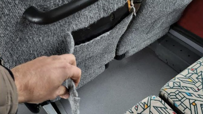 Trikrat naj bi bil nasilno odprt zasilni izhod, na avtobusu naj bi se kadilo, fotografije prikazujejo tudi razrezane sedeže in naslone teh in podobno.