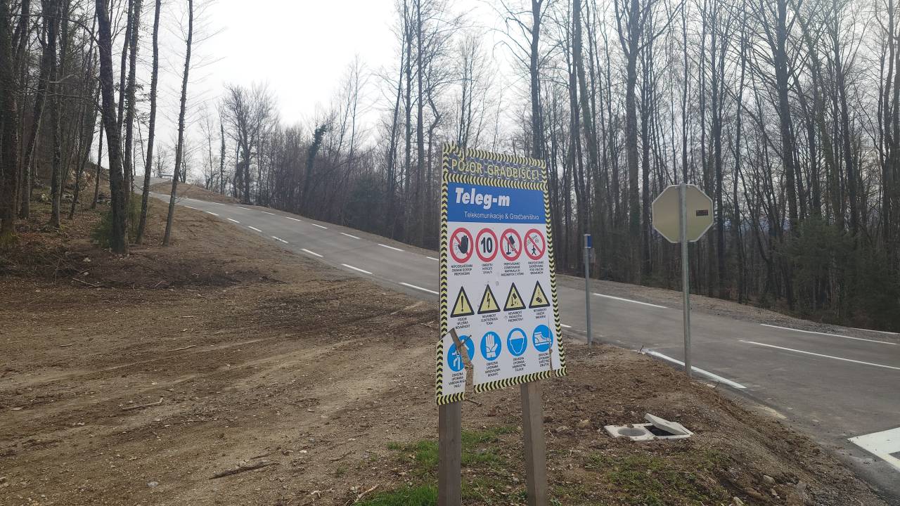Oznake na cesti so bile zarisane v tem tednu, pred uvozom s strani Dolenjega Karteljeva pa je postavljena zapora. Znaki označujejo delo na cesti, nevarnost na cesti in tisti najbolj pomemben, prepovedan promet za vsa vozila v vse smeri.