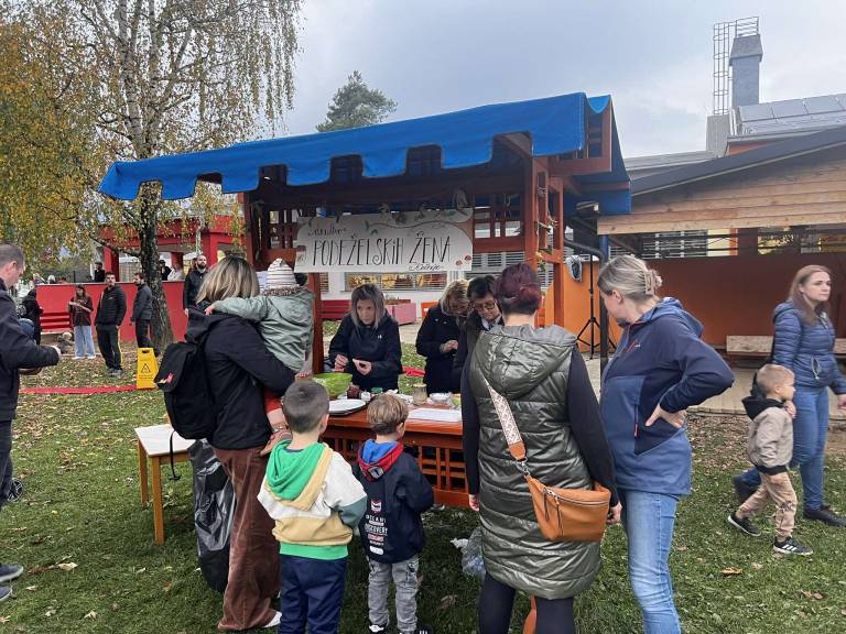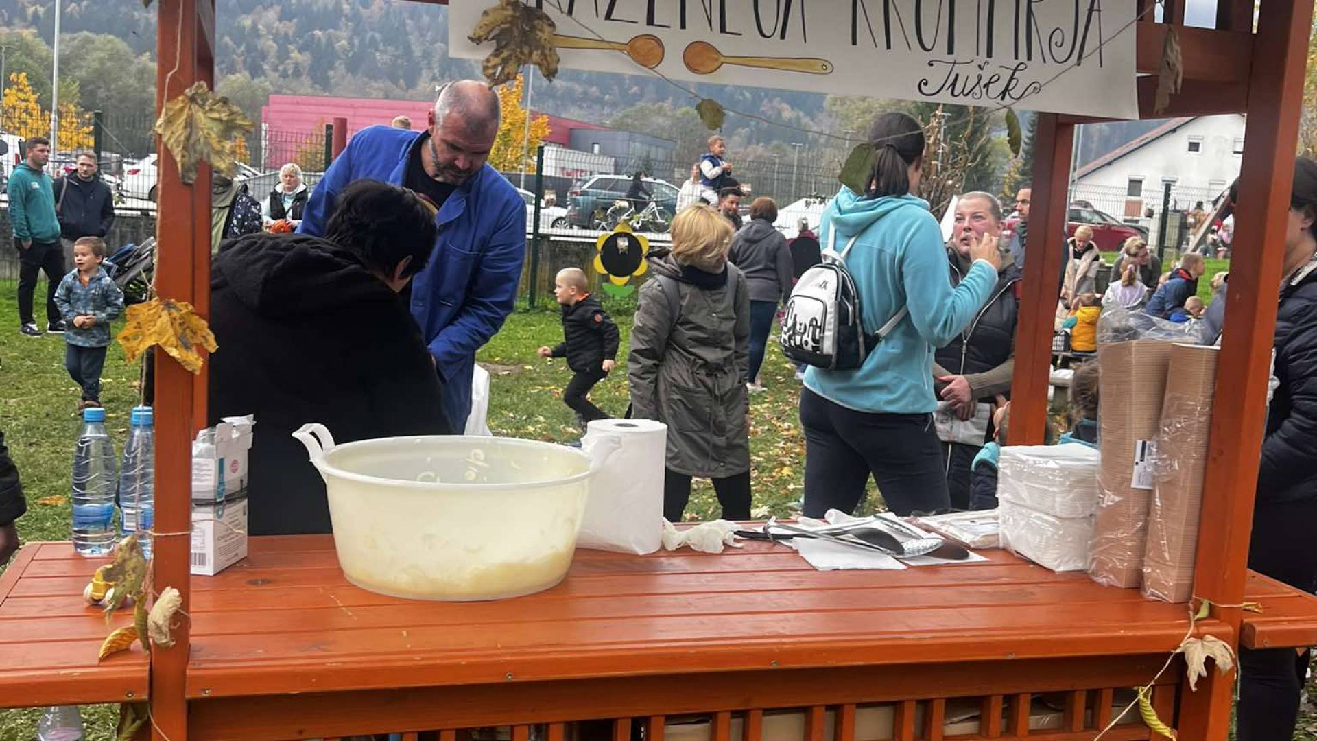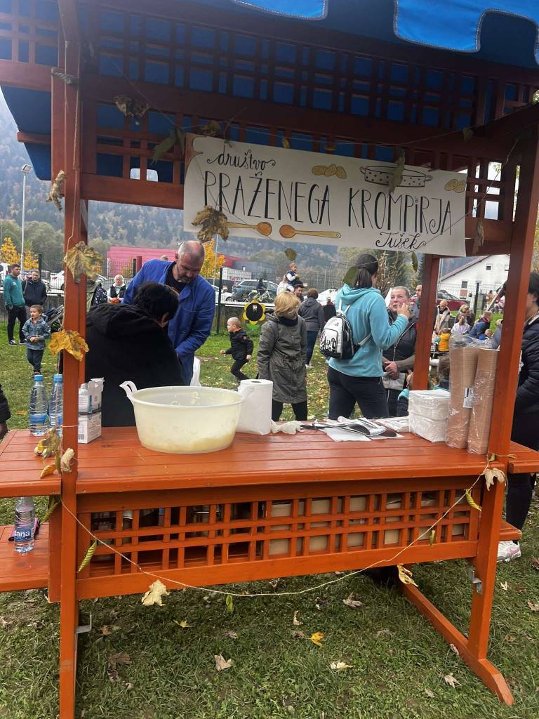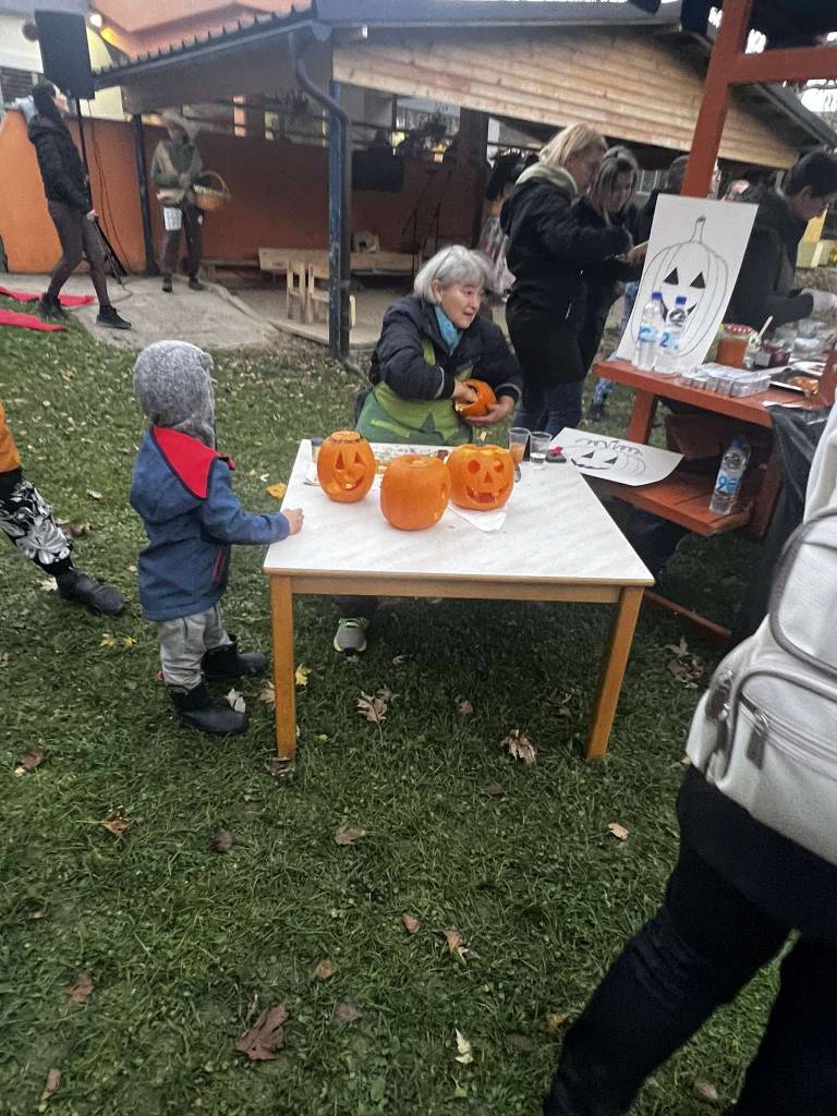 S kupončki so tako kupovali na stojnici kostanja, pa praženega krompirja, Klub podeželjskih žena pa jih je razvajal s sladkimi domačimi dobrotami kot je marmelada in sveže pripravljeno pecivo. Otroci so lahko kupili tudi sveže pripravljen jabolčni sok, opazovali izdelovanje strašnih buč, lahko pa so tudi ličkali koruzo ter peli in plesali.