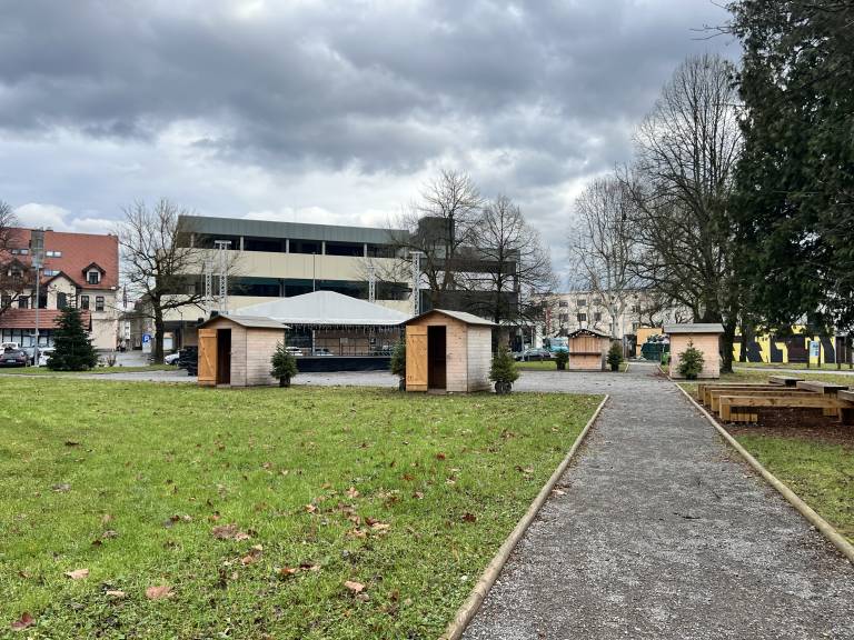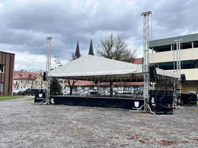 Hišice za praznično ponudbo že stojijo, veliki oder je že okrašen.