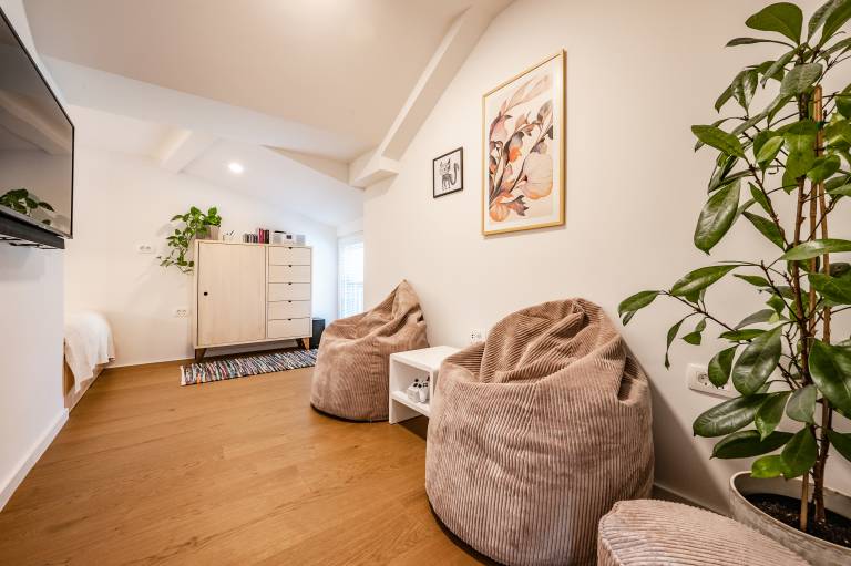 Vse našteto (in še več) bo 5-članska zasedba - trenutno po otvoritveni ceni - v glavni sezoni odštela 180 evrov na noč, v kolikor pa apartma Strato najame manj oseb, pravita Barbara in Rok, lastnika apartmaja, je cena nižja.