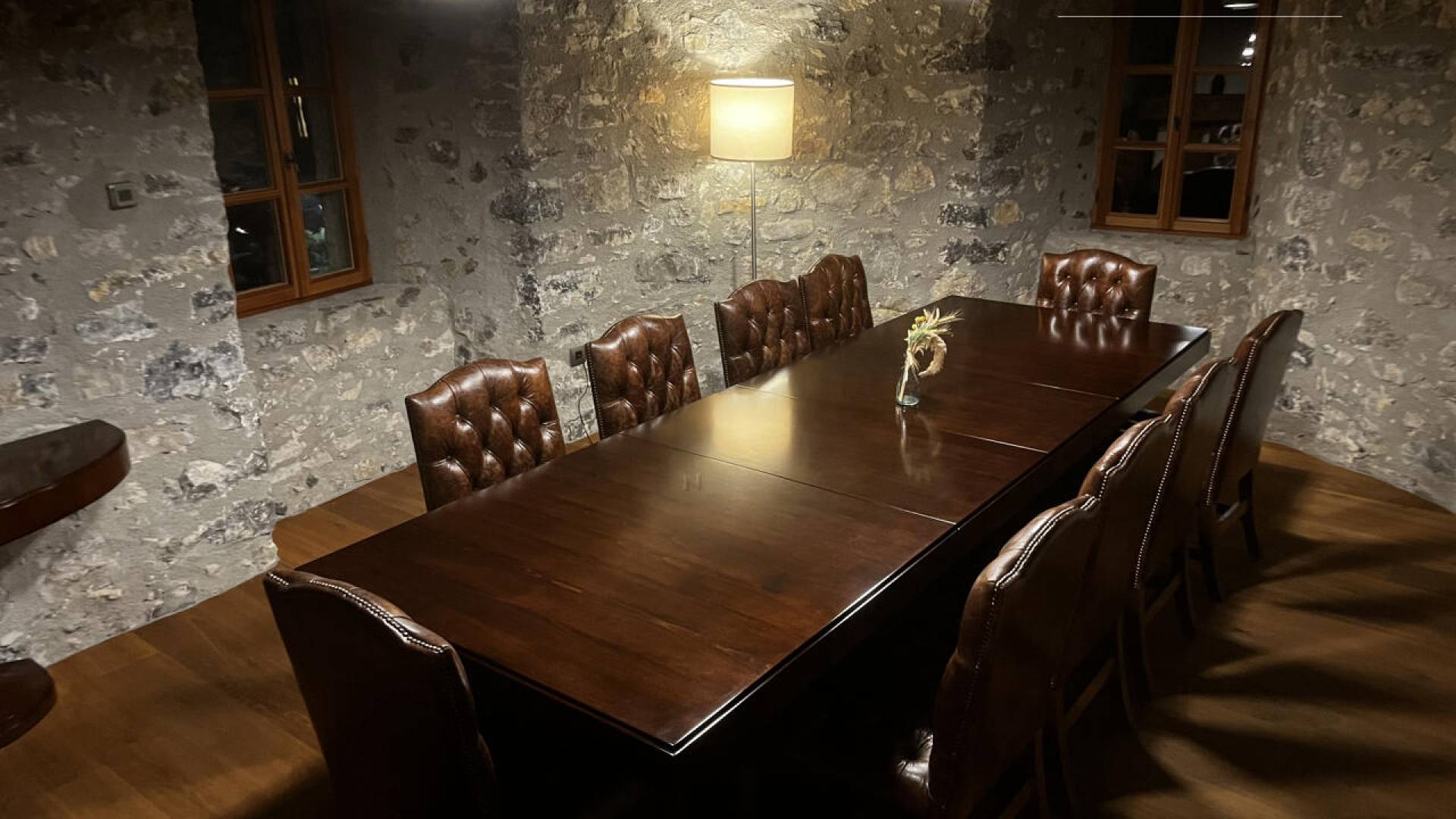 Posebno doživetje ponuja zimski salon s teraso in panoramskim razgledom na reko, ki predstavlja idealen prostor za sprejeme, sproščanje ali intimne večere.