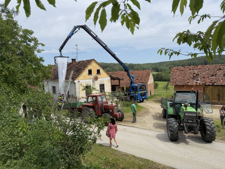 Pol metra toče v Lucovi, v Adrijancih uničenih 90 odstotkov streh.