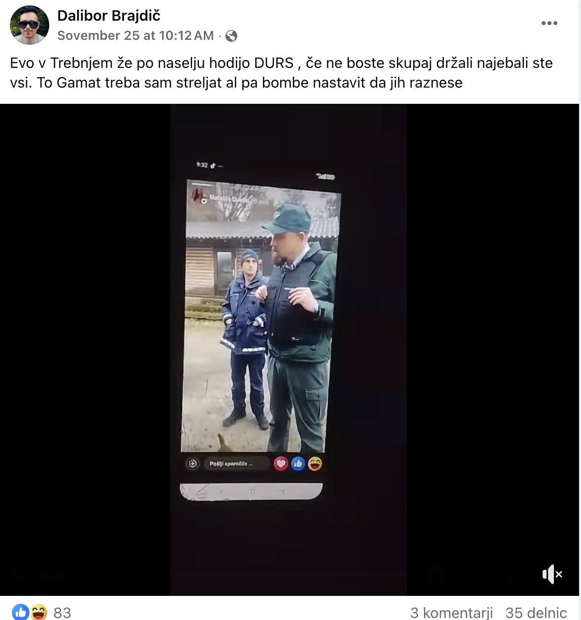 Objave postajajo še bolj skrb vzbujajoče, ko se začnejo nanašati na državne organe. V eni od najbolj šokantnih objav lahko preberemo poziv k nasilju: