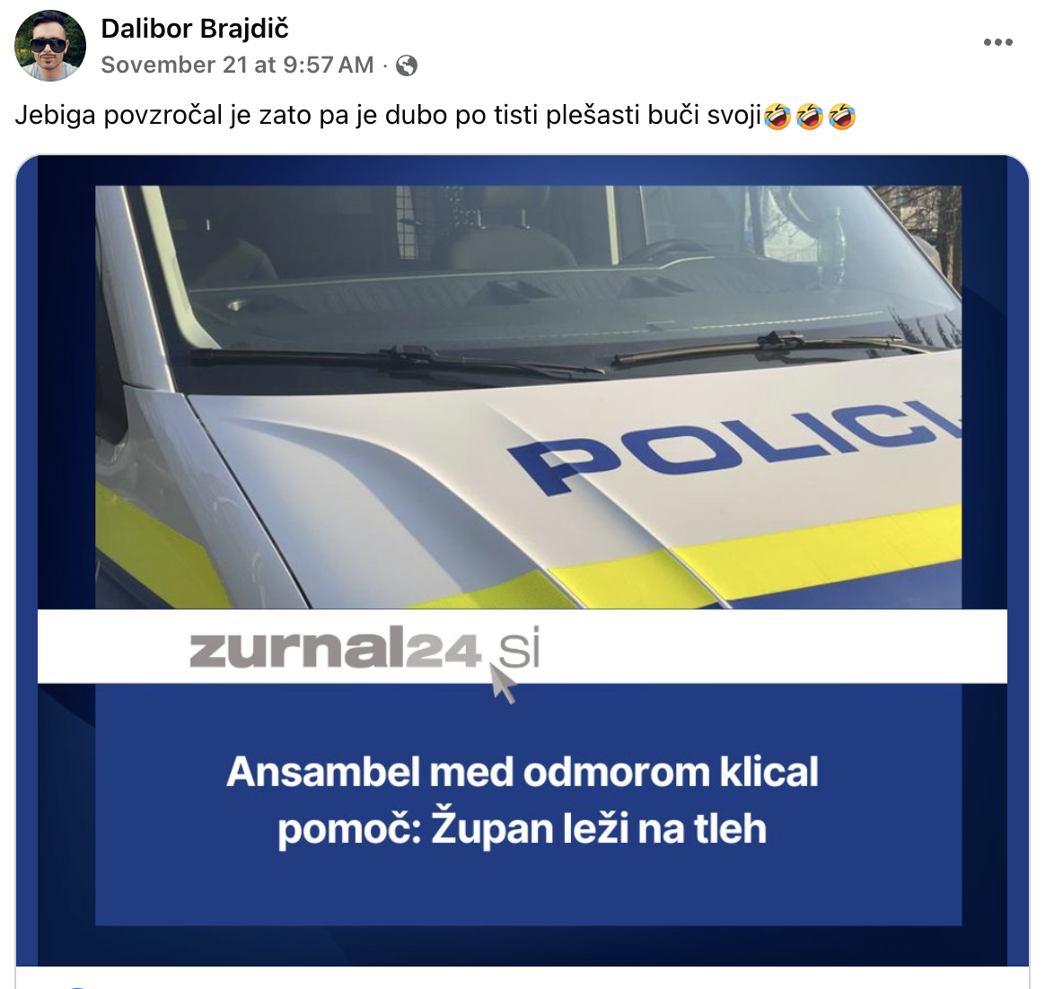 V drugih objavah Brajdič napada policiste, se posmehuje poškodovanemu županu Ribnice in žali posameznike iz javnega življenja.