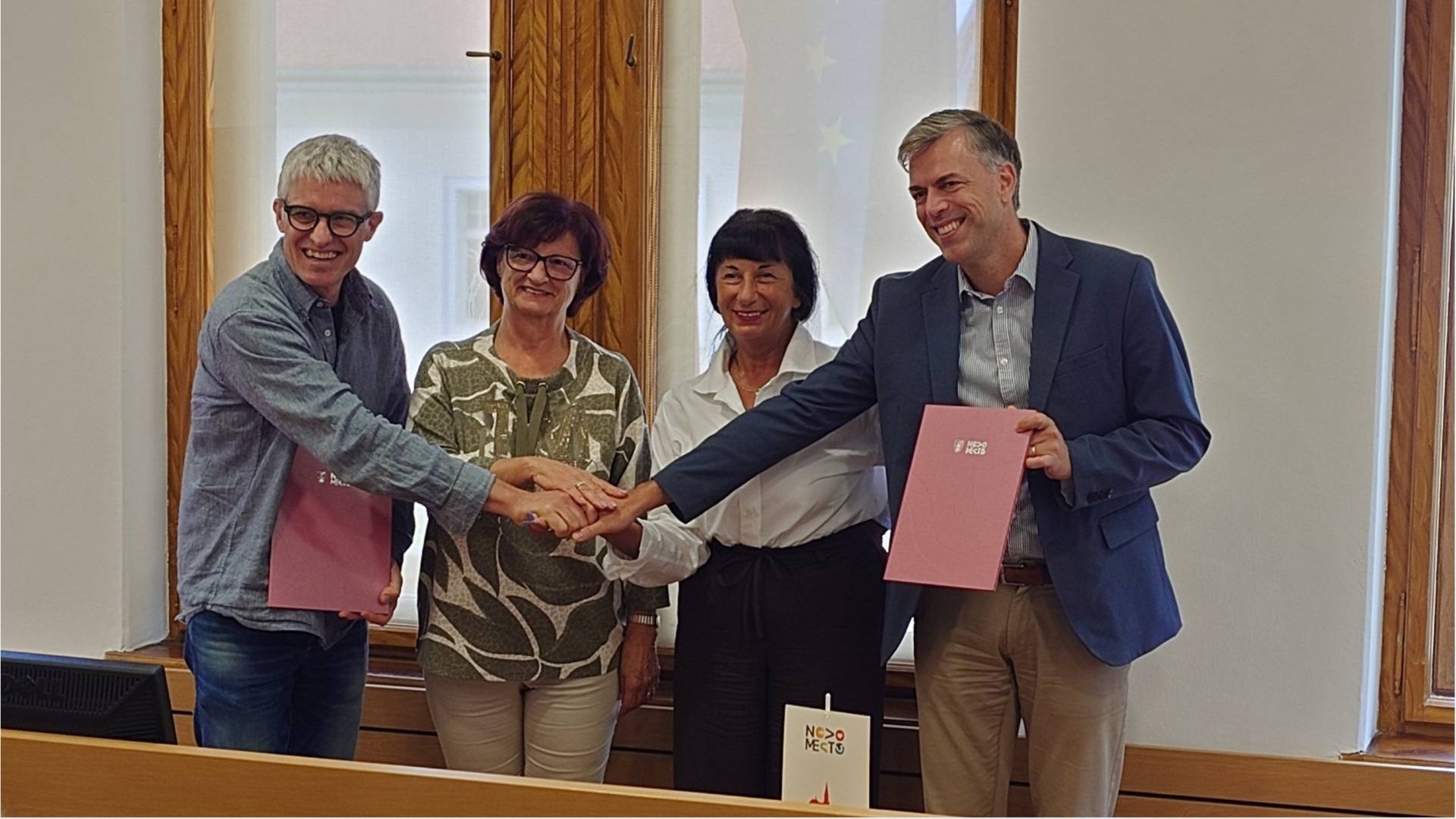 Na Rotovžu sta novomeški župan Gregor Macedoni in Blaž Budja, direktor biroka Jereb in Budja arhitekti, podpisala pogodbo za prihajajoči vrtec na Drski.