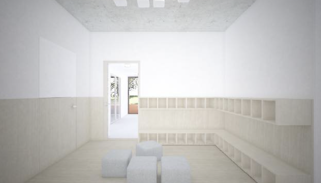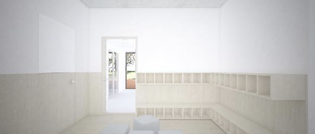 V pritličnem delu in v nadstropju bosta urejeni igralnici za prvo in drugo starostno skupino vrtca, skupaj z garderobami, sanitarijami, razdelilno kuhinjo in prostori za zaposlene.