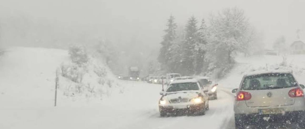 Kot opozarjajo ribniški gasilci, nastajajo zastoji, pri Velikih Laščah pa je promet oviran zaradi zdrsa tovornega vozila.