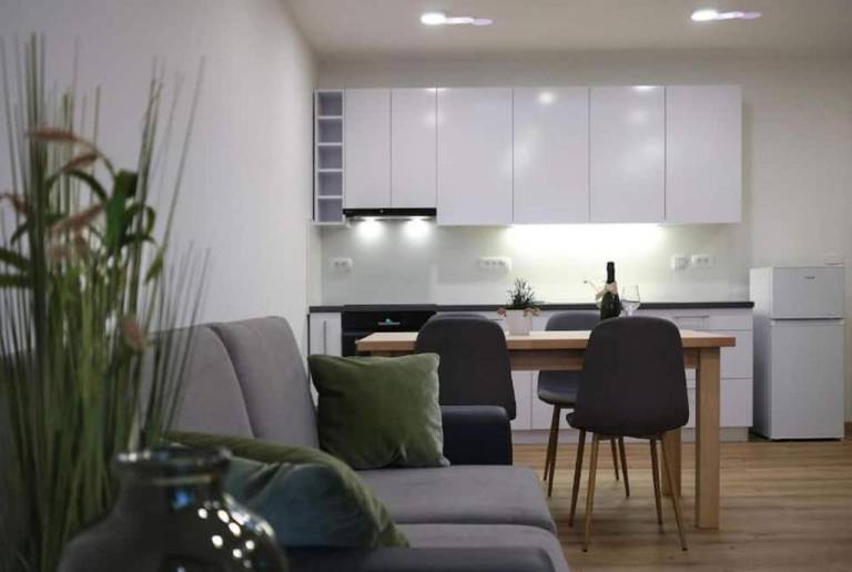 V objektu sta dva apartmaja – manjši meri 45 kvadratnih metrov, večji pa 75 kvadratnih metrov, oba pa imata balkon. Cena večjega apartmaja za teden dni (šest nočitev) znaša 2738 evrov, kar pomeni več kot 450 evrov na noč, pri čemer je namenjen štirim osebam.
