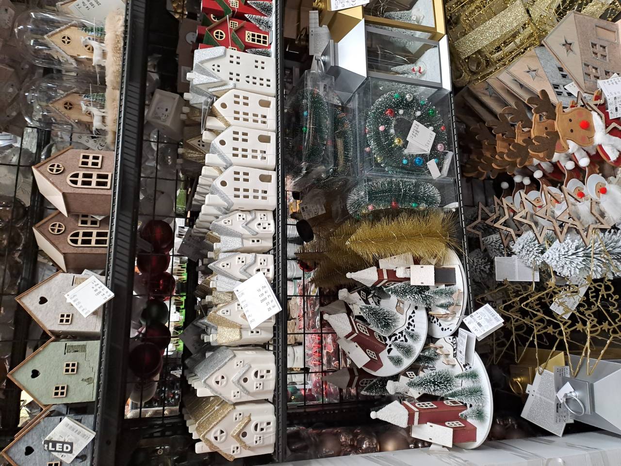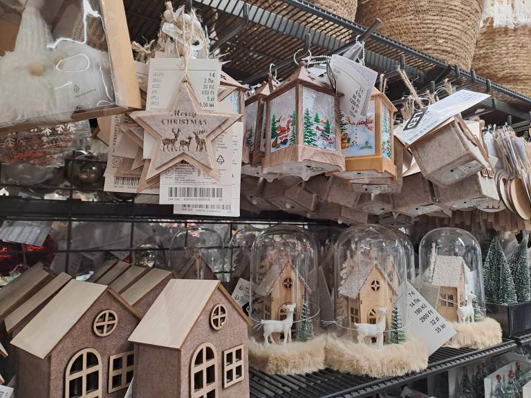 Med njimi najdete okraske za jelko, darilne vrečice, modelčke za piškote v obliki snežink in sneženih mož ter praznične skodelice za vročo čokolado.