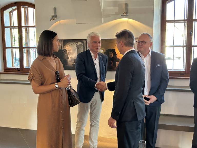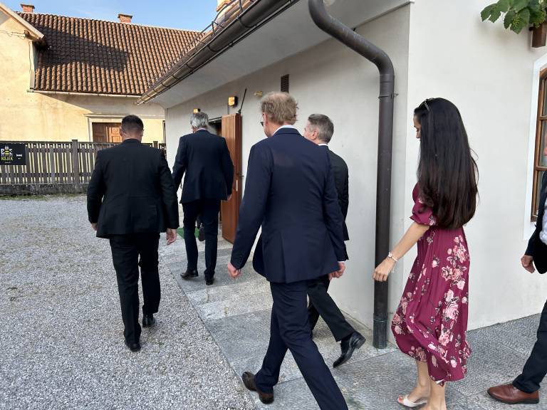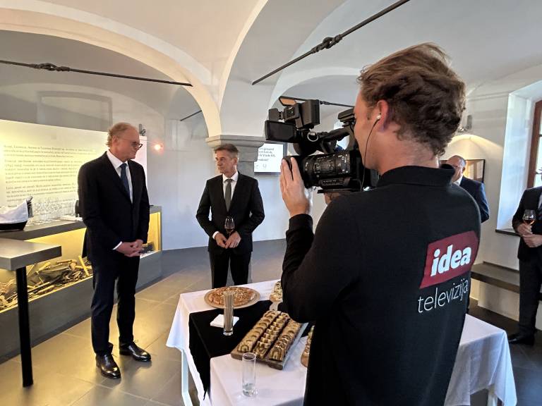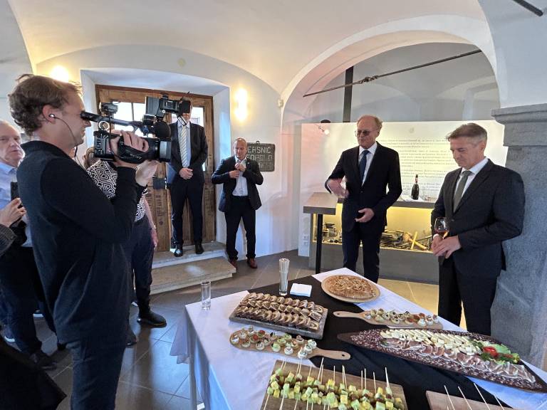 Udeleženci so se zbrali v prostoru, kjer se prepletata dediščina in sodobnost – simbolično primernem prizorišču za razmislek o povezovanju Slovenije s svetom.