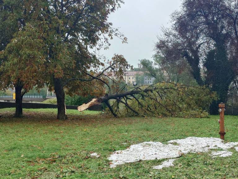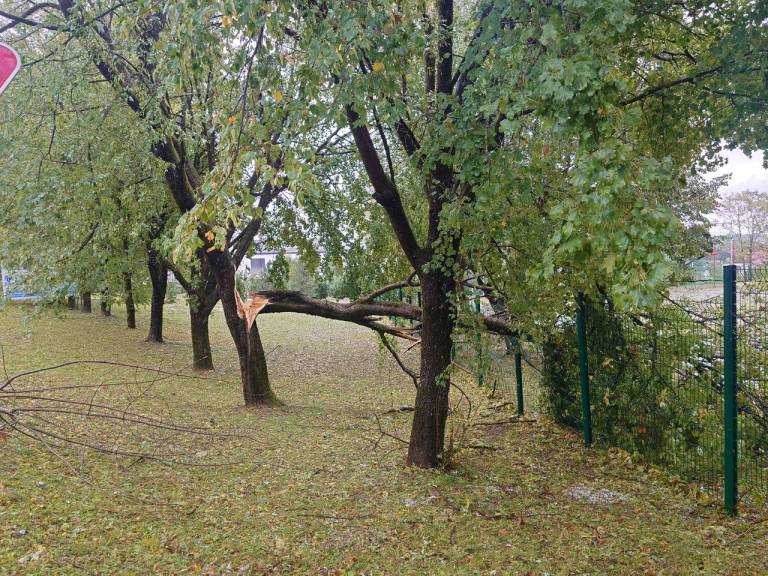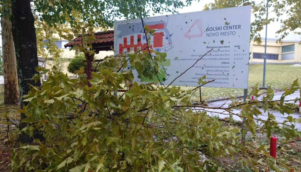 V neposredni bližini avtobusne postaje v Novem mestu pa je neurje odlomilo drevo, ob njem pa so še vedno vidni ostanki toče.
