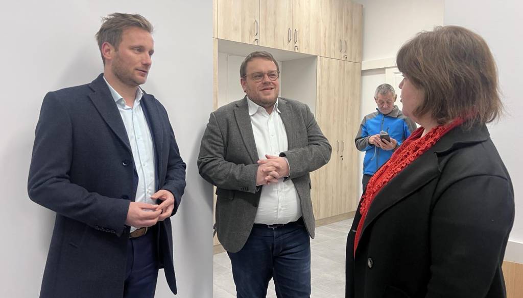Minister za solidarno prihodnost Simon Maljevac in kočevski župan Gregor Košir sta v družbi Natalije Janeš, direktorice Centra za socialno delo Kočevje v uporabo predala prostore za dolgotrajno oskrbo.