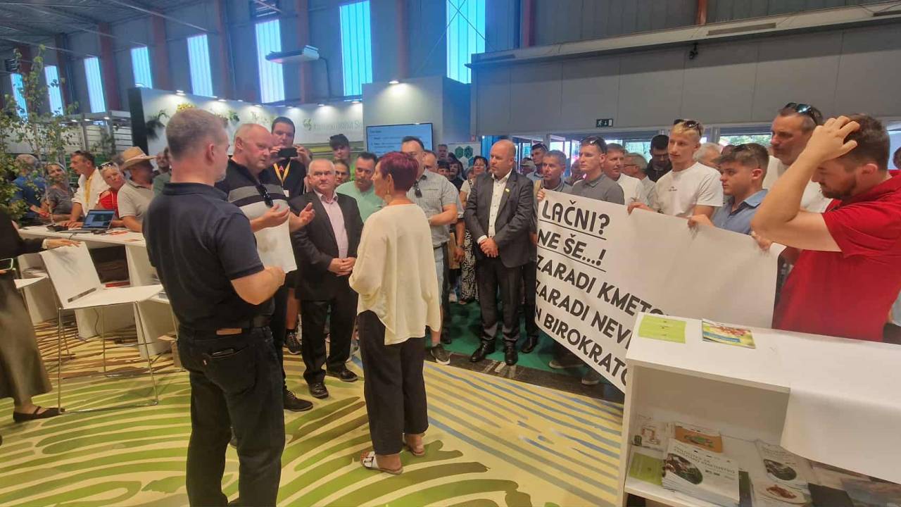 Na sejmu AGRA v Gornji Radgoni je danes skupina prašičerejcev in predstavnikov nevladnih organizacij vdrla na razstavni prostor ministrstva za kmetijstvo, gozdarstvo in prehrano ter onemogočila delo zaposlenih, so sporočili z ministrstva