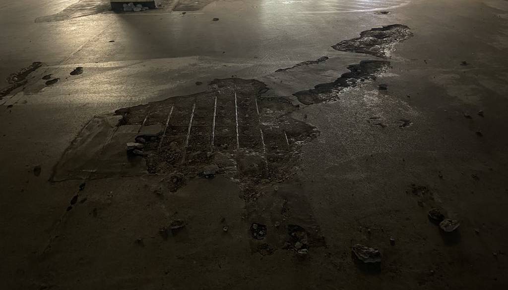 Cesta je na več delih načeta do te mere, da se vidi železna armaturna mreža. Pri nekaterih luknjah je sicer vidno, da so bile v zadnjem času zapolnjene, a nam da že kratek sprehod po parkirni hiši vedeti, da stanje ni najboljše.