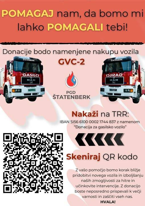 »Da bo vozilo res v celoti opremljeno in pripravljeno na intervencije, potrebujemo vašo pomoč,« sporočajo iz Prostovoljnega gasilskega društva Štatenberk.