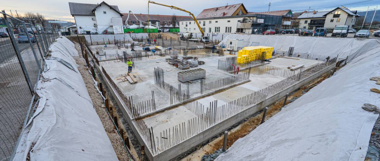 Temeljna plošča za Kulturno-upravni center Ivančna Gorica je skoraj gotova - gradbena dela potekajo po načrtu, center naj bi začel delovati konec leta 2026.