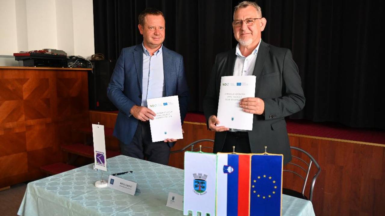 Sevniški župan Srečko Ocvirk in direktor Javnega podjetja Komunala d. o. o. Sevnica Mitja Udovč sta v Loki podpisala pogodbo za izgradnjo vodovoda Loka–Račica z vodohranom Loka.