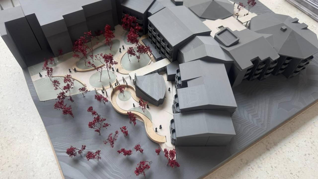 Razstava vključuje plakate s predstavitvijo ključnih konceptov in vizualizacij ter maketo, ki obiskovalcem omogoča še boljši vpogled v zasnovo prostora.