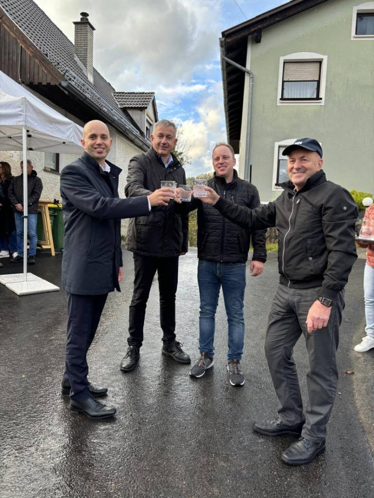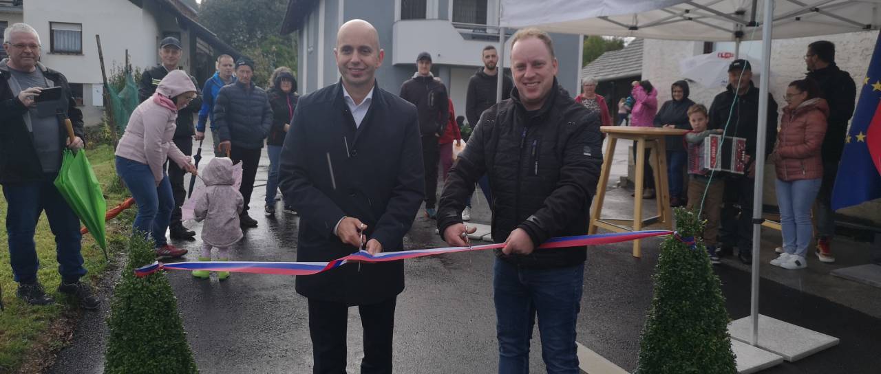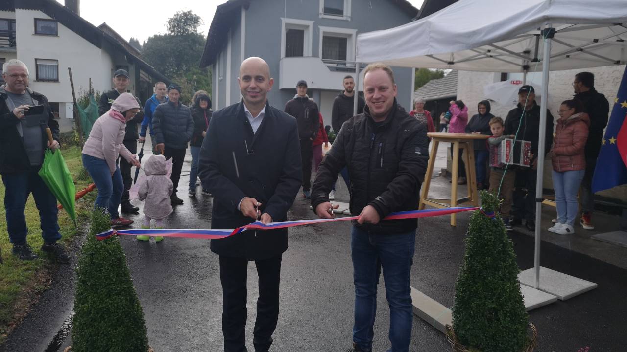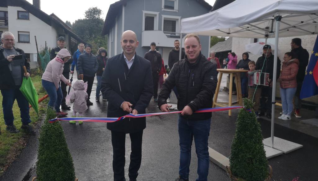 Župan Samo Pogorelc je včeraj skupaj z vodjo projekta s strani vaščanov Rokom Šilcem slavnostno prerezal trak in s tem simbolično odprl prenovljeno nekategorizirano cesto ter vodovod, obe v dolžini po 300 metrov, v naselju Gorenji Lazi.