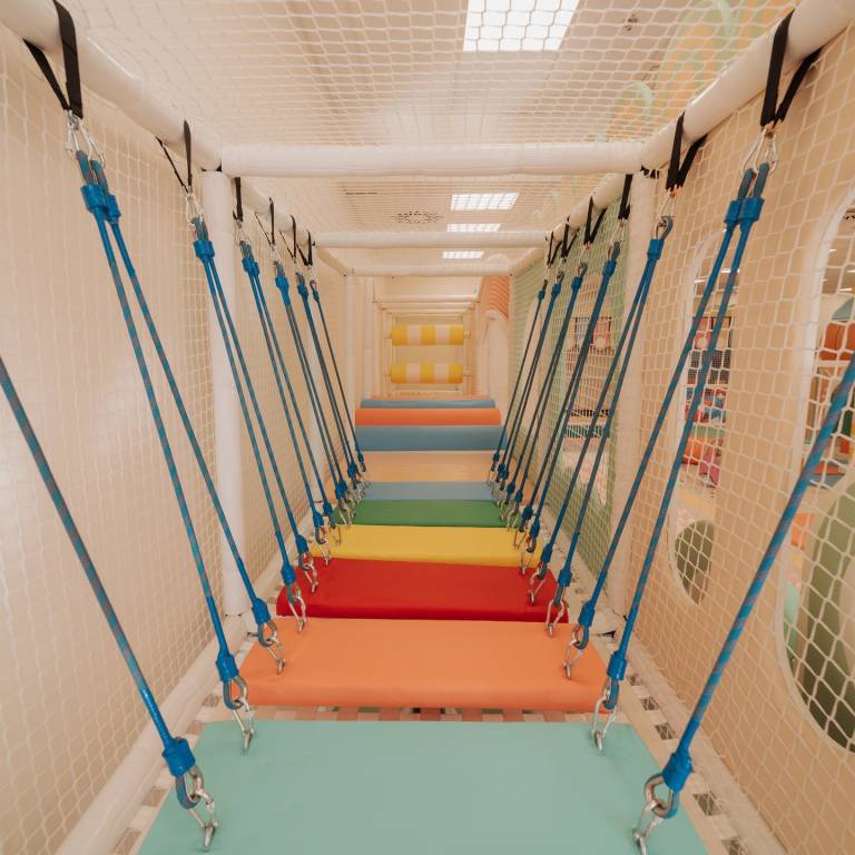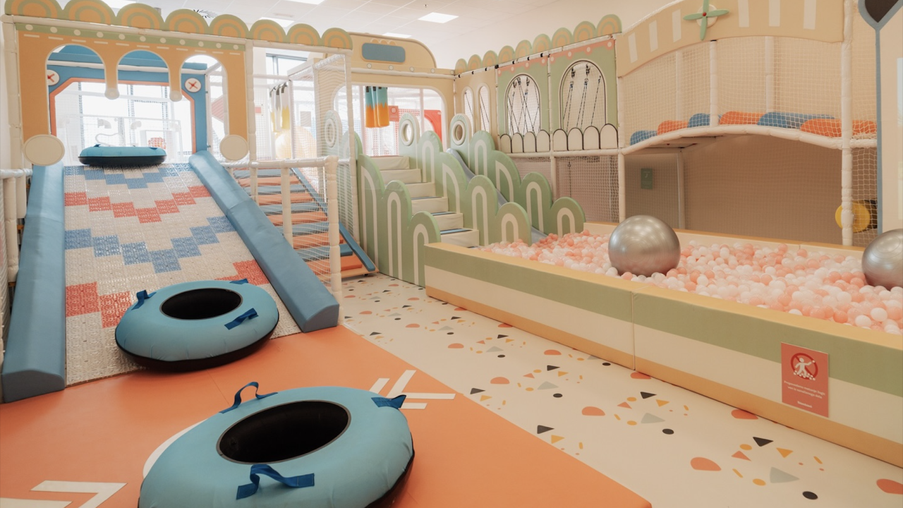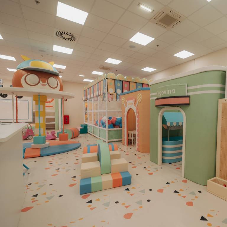 Igralnica Bambino se ponaša z več kot 220 kvadratnih metrov sodobnih igralnih elementov v pastelnih barvah in je namenjena otrokom od nič pa tja do 14 let.