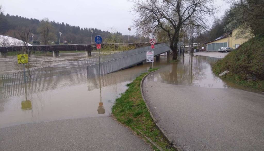 Zaradi nevarnosti in varnosti pešcev je Loška brv do nadaljnjega zaprta, saj voda ovira varen prehod.