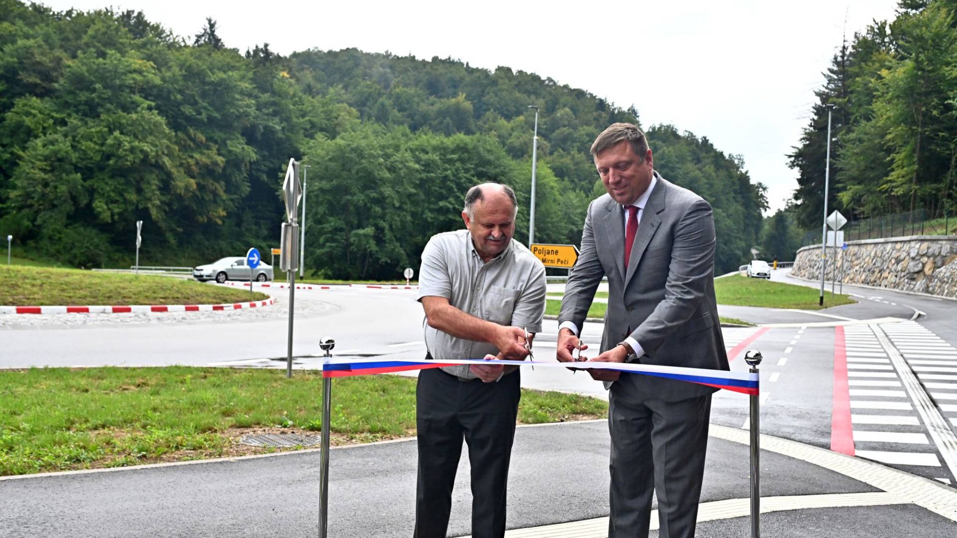 Na Poljanah pri Mirni Peči so odprli novo krožišče in prenovljen odsek državne ceste R2-448 Grm–Šentjurij. Investicija, vredna več kot tri milijone evrov, je v celoti financirala Direkcija RS za infrastrukturo.