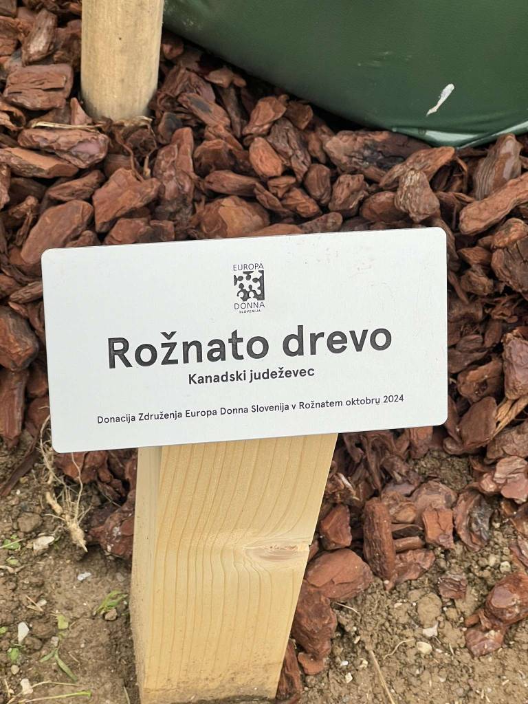 Rožnato drevo je Kanadski judeževec in je donacija Združenja Europa Donna Slovenija v Rožnatem oktobru 2024.