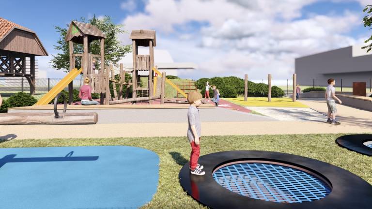 Na voljo bo bogata izbira igral: gugalnice, večji igralni stolp, tobogan, vzmetno igralo, mreža za plezanje, trampolini v tleh ter celo zip line dolžine 17 metrov.