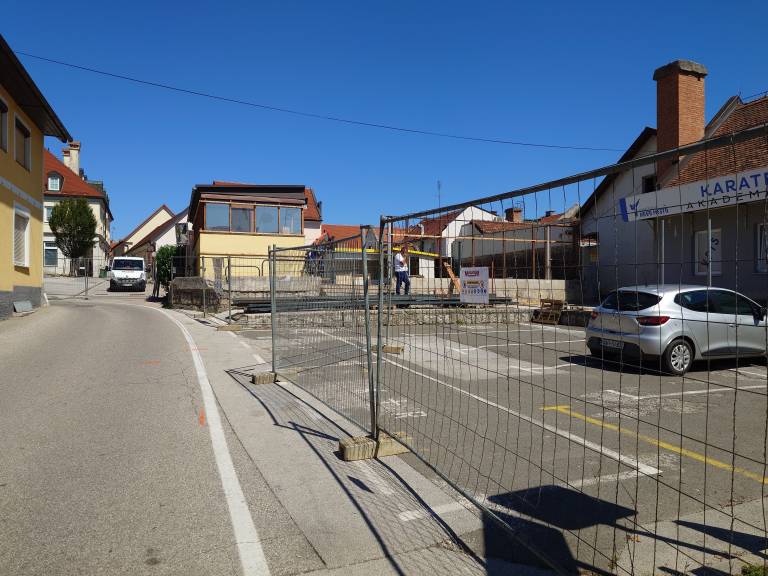 Gradbišče je opremljeno z zaščitnimi ograjami, kjer ena izmed njih razkriva tudi zaključek gradnje.