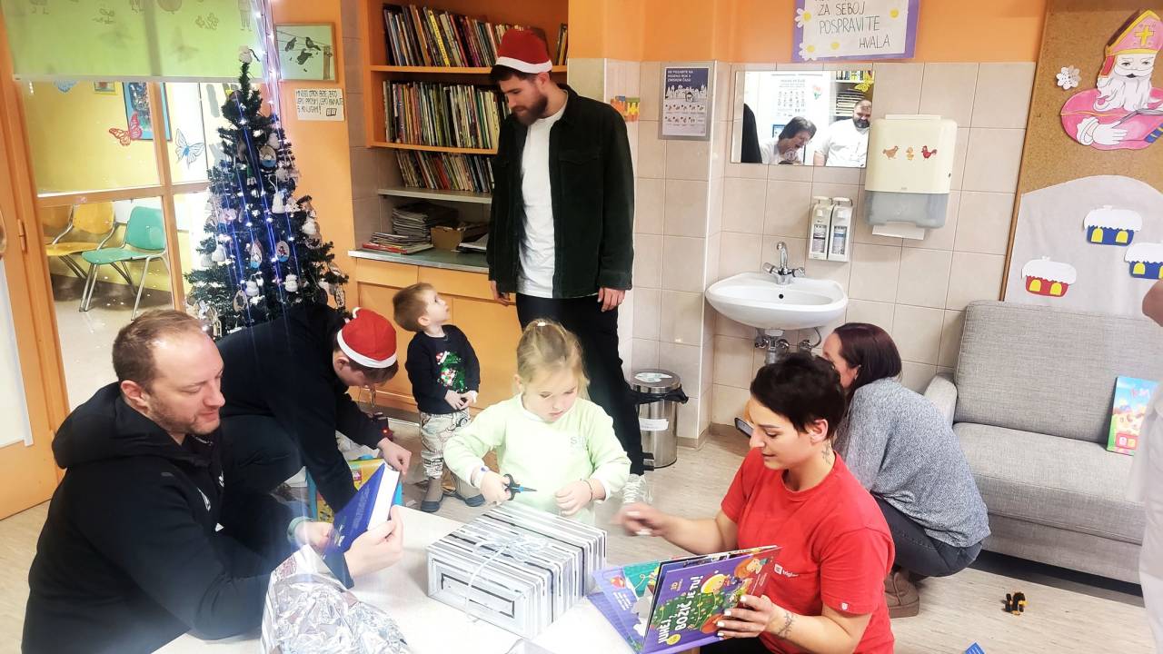 Letos so otroke obiskali Bine Plut, Tayler Persons in trener Dejan Jakara. Zbrane je pozdravila Klara Bartolj, dr.med., specialistka pediatrije, v.d. predstojnice otroškega oddelka v Splošni bolnišnici Novo mesto.