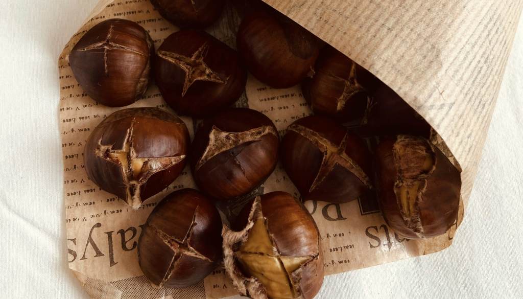 - Priprava in rezanje: Vsak kostanj zarežite s križnim ali vzdolžnim rezom, da med peko ne poči.