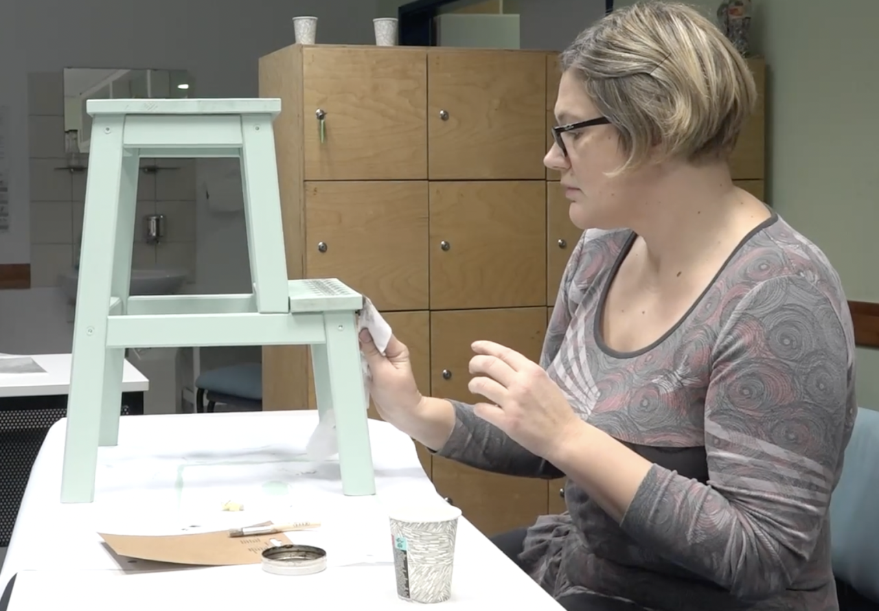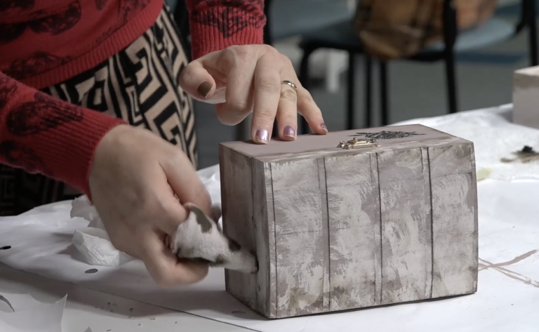 Vsak je prinesel svoj kos, ki so ga najprej očistili, nato pa z različnimi barvnimi tehnikami nanesli tri sloje kredne barve. Nato so šablonirali z rjavim voskom, kar pomeni, da so dali tem dekorativnim elementom še poseben pečat. Mandale in čipkasti vzorci so tako še dodatno popestrili izdelke, na katere so bili na koncu vsi izredno ponosni.