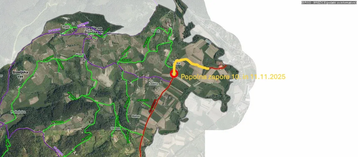 Podjetje CGP obvešča, da bo prihodnji teden zaradi preplastitve vozišča vzpostavljena popolna zapora državne ceste Bizeljsko–Orešje.