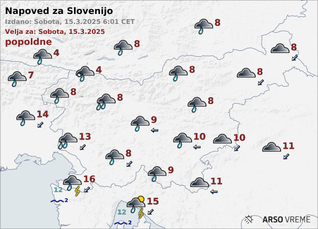 Najvišje dnevne temperature bodo od osem do 14, na severozahodu okoli šest stopinj Celzija.